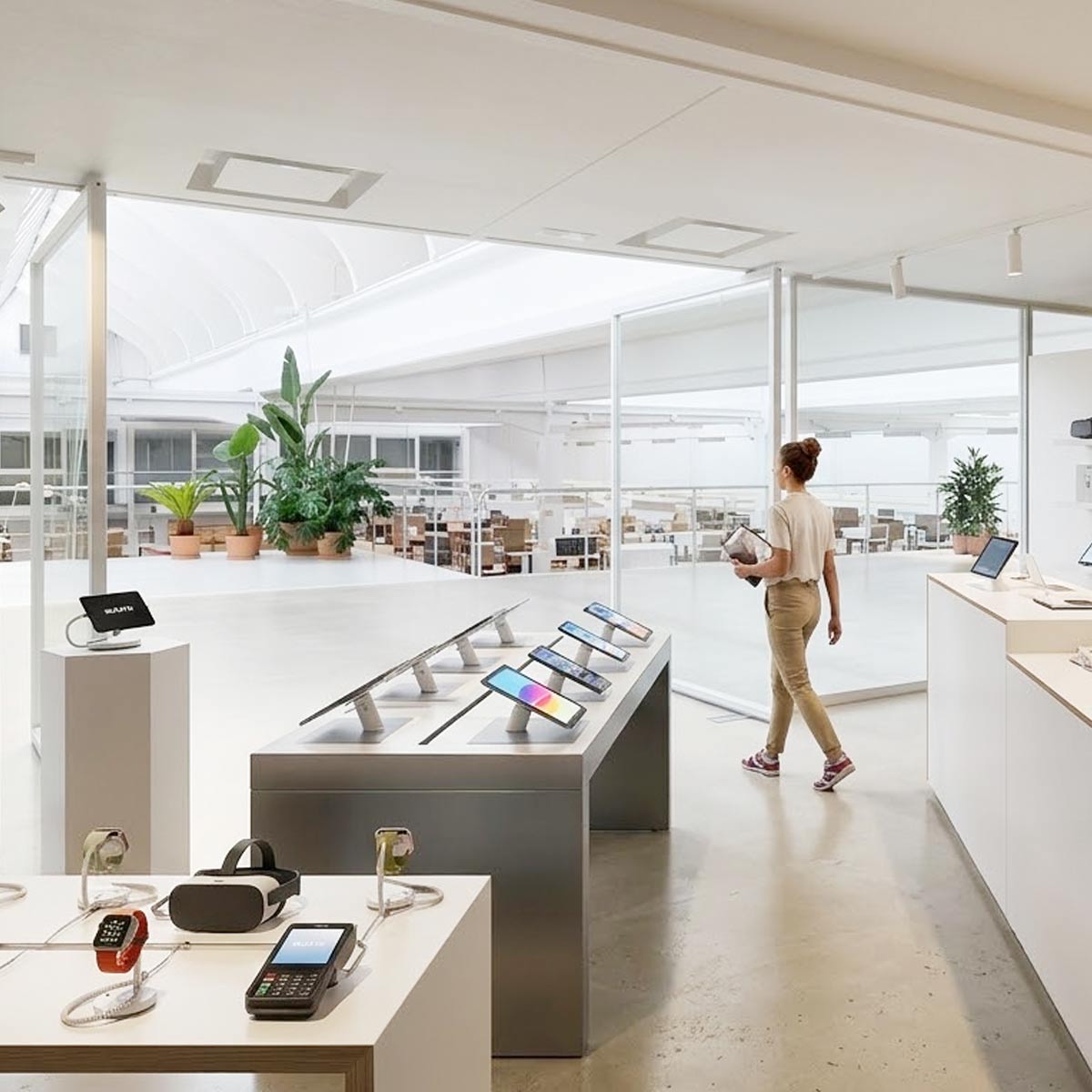 With the system installed overhead, retailers can eliminate bulky pedestal antennas and maintain open, modern store entrances.